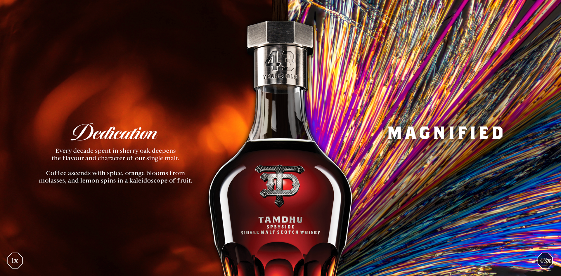 At Guy & Co I helped produce, in collaboration with our in-house creatives and an external CGI partner, the Tamdhu Magnified campaign. This involved working with Peter Woitschikowski’s on photomicrography and set builders for the bespoke tasting event.